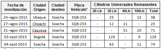 En respuesta a la anterior disposición regulatoria, la empresa DISTRIBUIDORA CENTRAL DE GAS S.A. E.S.P., que realiza las actividades de distribución y comercialización minorista en el departamento de Cundinamarca, mediante comunicaciones con números de radicado CREG E-2015-008161 y E–2015-008262, informó la cantidad de cilindros universales remanentes en su poder y la programación de movilización y destrucción de los mismos.
