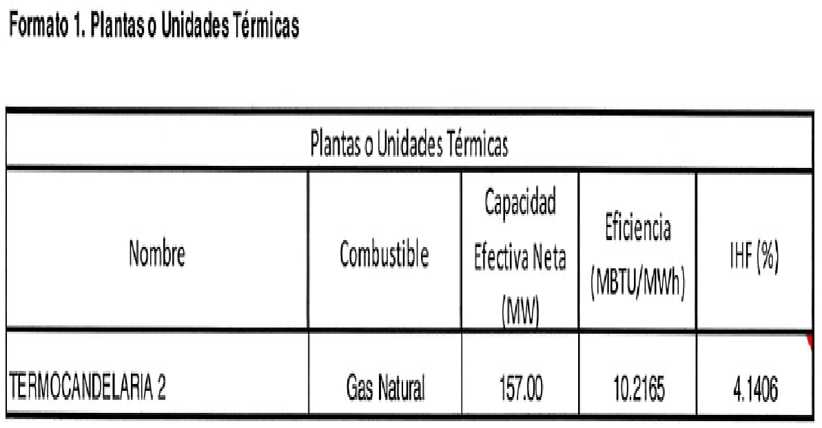 1. PARÁMETROS DECLARADOS POR TERMOCANDELARIA 2