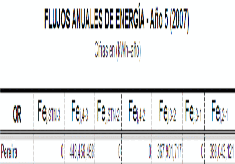 | Asunto: | Información de flujos de energía anuales – or pereira. |