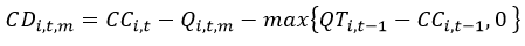 | Capacidad disponible de compra del distribuidor i, para el periodo de compra t, calculada para el mes m, medida en kilogramos. | |