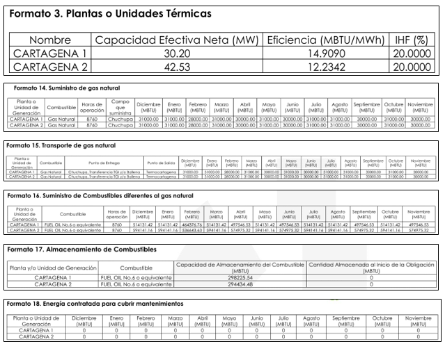 | Asunto: | Publicación de parámetros e índices de combustible para la determinación de la energía firme para el cargo por confiabilidad - ENFICC, correspondiente a los períodos 2025-2026 y 2026-2027, de las plantas/unidades de generación Cartagena 1 y Cartagena 2, por cambio de combustible |