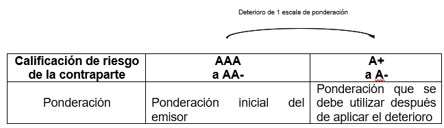El activo por contingencias a cargo del reasegurador y las cuentas por cobrar de coaseguro, cuando corresponda, deben ser objeto del reconocimiento de deterioro prospectivo, a partir de la evaluación de riesgo que surge por la calidad crediticia de la contraparte reaseguradora y por las demás circunstancias que puedan afectar el cumplimiento futuro del reaseguro y de la cuenta por cobrar de coaseguro. Para medir el valor del deterioro, las entidades deben aplicar la siguiente fórmula: