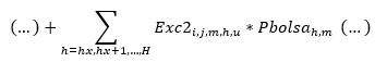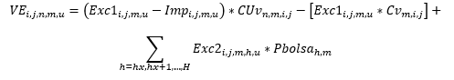 se establece con precisión horaria, siendo h la hora que inicia en hx, que a su vez es la hora a partir de la cual los excedentes sobrepasan la importación (