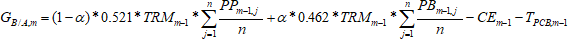 | n: | Número de días del mes m-1 para los cuales hay información de precios de propano y butano en Platt's. |