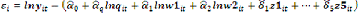 El Anexo 1 de la Resolución 180 de 2014 contiene el modelo de frontera con el que se predice la eficiencia de los mercados de comercialización. Para este cálculo es necesaria la determinación de los residuales del modelo, entendidos estos como la diferencia entre el valor del costo de comercialización de la empresa y el costo estimado por el modelo de eficiencia, en este sentido la expresión matemática es: