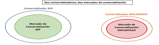 - Actualmente tanto Empresa de Energía de Pereira como EMCARTAGO son comercializadores independientes cada uno con un mercado de comercialización incumbente, como se muestra en la siguiente figura: