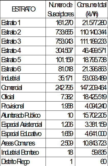 Ahora bien, en lo concerniente con las tarifas más utilizadas en Codensa, a continuación le proporcionamos la información del número de usuarios y consumo total del mes de diciembre de 2019, información tomada del Sistema Único de Información, SUI, administrado por la Superintendencia de Servicios Públicos domiciliarios: