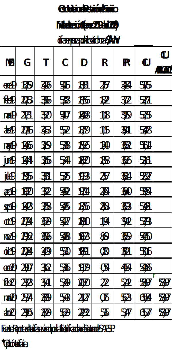 En el siguiente cuadro encontrará el costo unitario de prestación del servicio de nivel de tensión 1, discriminado por componente, reportado por la Electrificadora de Santander S.A. E.S.P., entre enero de 2019 y abril de 2020, igual a las tarifas del servicio aplicables a los usuarios residenciales de estrato 4: