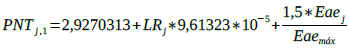- En la tercera columna, los índices de pérdidas no técnicas eficientes (PNTj,1), calculados con base en la fórmula del numeral 7.1.1.3 del anexo general de la Resolución CREG 015 de 2018, acorde con la extensión (en km) de las líneas rurales de nivel de tensión 2 de un OR determinado, representando la dispersión de un sistema en particular.