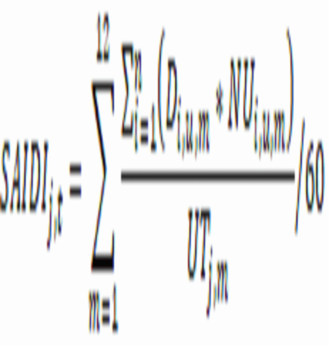 SAIDIj,t: Indicador de duración promedio por usuario, de los eventos sucedidos en el SDL del OR j, durante el año t, medido en horas al año.