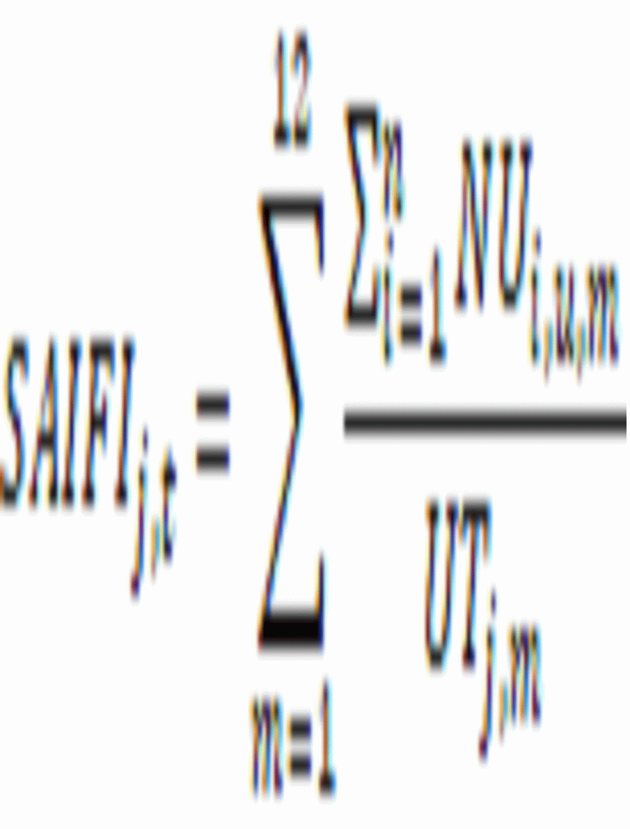 El indicador SAIFI representa la cantidad total de los eventos que en promedio perciben todos los usuarios del SDL de un OR, hayan sido o no afectados por un evento, en un período anual. Se establece mediante la siguiente expresión: