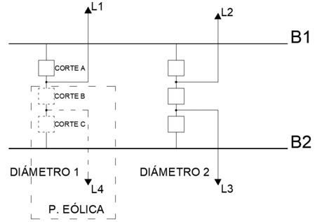 Y plantea la posibilidad de la conexión de un generador en el diámetro 1, con lo cual la subestación quedaría con la siguiente configuración: