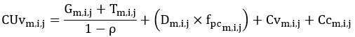 | Costo unitario en ($/m3) correspondiente al transporte de gas combustible, destinado a usuarios regulados aplicable en el mes m, en el Mercado Relevante de Comercialización i y atendido por el comercializador j, calculado conforme se establece en el Capítulo IV de esta Resolución. Incluye los costos de transporte por gasoducto (Tm,i,j), y/o transporte terrestre de gas combustible (TVm,i,j) y/o compresión (Pm,i,j) de Gas Natural Comprimido (GNC). | |