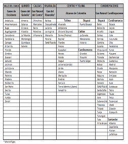 De manera atenta le informamos que en transporte de gas natural no hay concesiones. En distribución de gas natural, concretamente, en las áreas de servicio exclusivo, ASE, de acuerdo con su consulta, está lo siguiente(1):