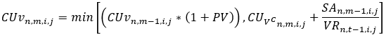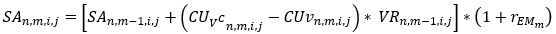 Para calcular el saldo acumulado, variable SAn,m,i,j, se utiliza el saldo acumulado del mes anterior, los componentes variables del CU del mes de cálculo, CUvcn,m,i,j y CUvn,m,i,j y las ventas del mes anterior.
