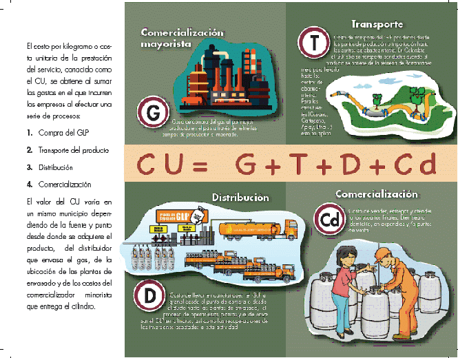 En el caso específico del GLP, la Resolución CREG 180 de 2009 establece la fórmula tarifaria que deben aplicar las empresas prestadoras del servicio con el fin de determinar el precio del mismo. En esencia, el objetivo de las fórmulas tarifarias es el de agregar los costos en que debe incurrir el prestador del servicio para atender a sus usuarios finales. Por lo tanto, el precio final que se le cobra al usuario puede aumentar o disminuir en función de la variación que presenten los diferentes componentes de los costos incluidos en la fórmula tarifaria.