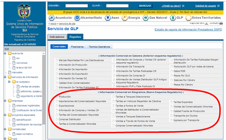 El acceso a la información lo puede hacer ingresando a la página web del SUI www.sui.gov.co y luego a las consultas relacionadas con el servicio de GLP (a través de un icono en forma de cilindro), y luego al vínculo llamado “Información Comercial en Kilogramos (Nuevo Esquema Regulatorio)”.