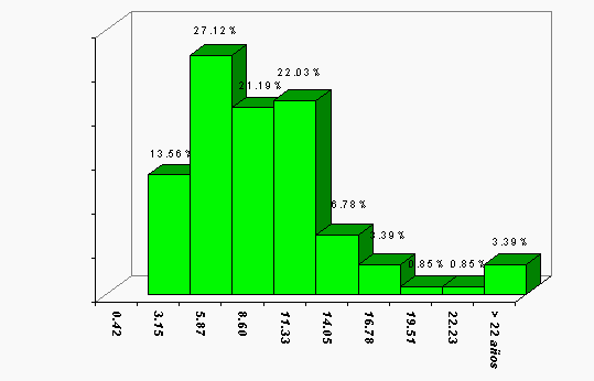 En el gráfico 1, puede verse como los cilindros que hoy circulan en el país en su gran mayoría han superado ampliamente su vida útil (más del 50% de los cilindros tienen más de ocho (8) años de uso).