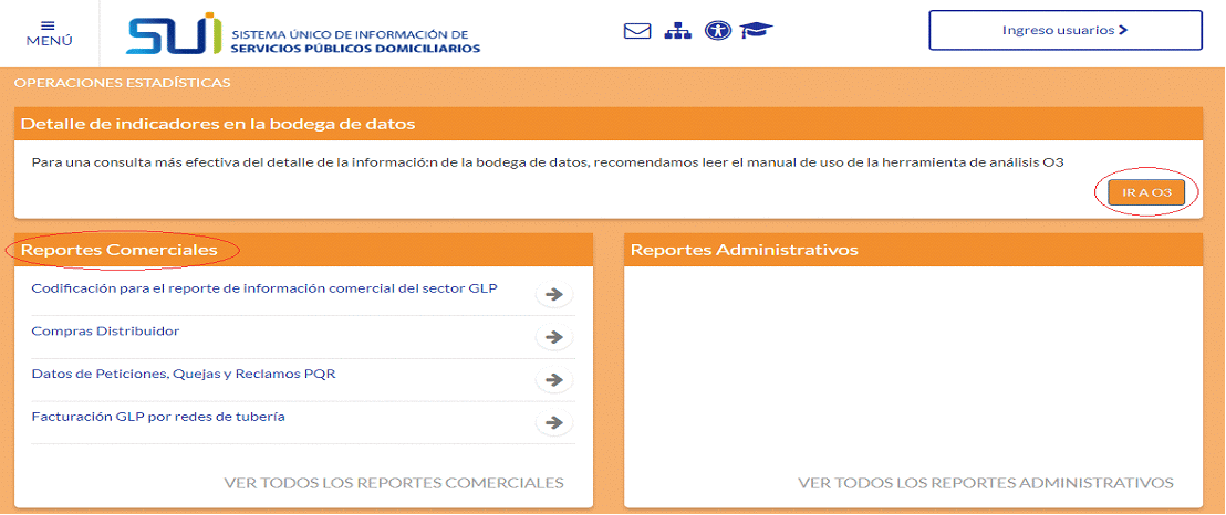 En ésta página podrá encontrar la herramienta de análisis O3 en la que podrá consultar, entre otras, información comercial relativa a la prestación del servicio público domiciliario de GLP tal como el valor por unidad de venta del comercializador minorista ($/cil) seleccionando el periodo, actividad, ubicación, empresa, presentación, etc. Dicha información corresponde a las tarifas que las empresas prestadoras del servicio ya aplicaron a sus usuarios y las reportaron al SUI.