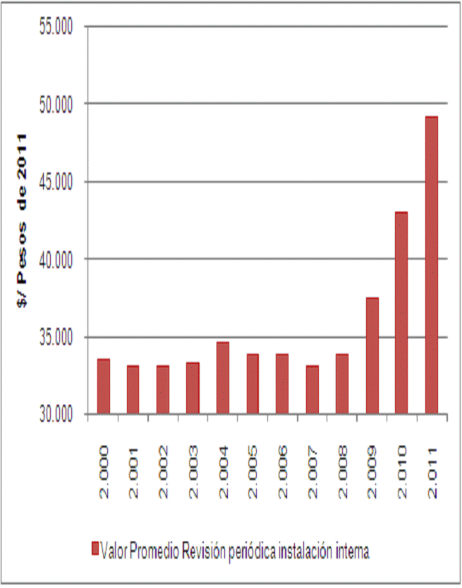 Gráfico 1. Valor promedio revisión periódica instalación interna periodo 2000-2011