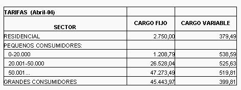 - Tarifas en el mes de abril de 2004 (Anterior periodo tarifario)