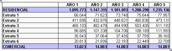 La expansión se hará principalmente en los estratos 1, 2 y 3, que representan los mayores costos de expansión del servicio, vale decir que dichos usuarios tienen un consumo mensual inferior al promedio residencial, con lo cual los costos medios de atender estos usuarios son superiores al costo medio de atender los demás usuarios del mercado. A continuación se discrimina dicha expansión por estratos.