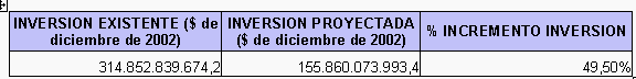 GAS NATURAL S.A. E.S.P. hará inversiones por 155.800 millones de pesos, aumentando así su inversión existente en un 49,5%, esto teniendo en cuenta que las redes actuales se valoran en 314.800 millones de pesos. ($diciembre de 2002).