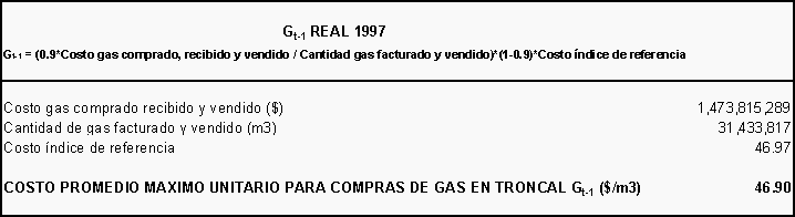 Kst = { $216.06 (Mst97) - $4.817928.863 (INR97) + [1.915.972 (m³ Adic.) * $121.95 (C. Variable Prom. Pend.)] } * 1.2420 (1 + J97)