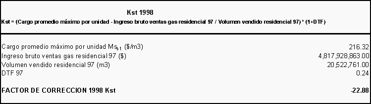 La reducción del factor de corrección Kst de $22.91/m³ a $11.26/m³ (ver cuadros anexos), producida al incluir en el cálculo del mismo 1.915.972m³ que cuantificamos se dejaron de vender en dicho año al sector residencial, de 2.806.403 m³ dejados de vender en todo el mercado, por los problemas de suministro anteriormente señalados. Ello cambia sustancialmente la información que envió la Empresa por solicitud de la Comisión el pasado 11 de febrero del año en curso, con la comunicación No 3685, para el cálculo de mencionado factor.