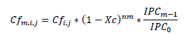 es el factor de indexación del cargo definido como el cociente entre el Índice de Precios al Consumidor reportado por el DANE para el mes