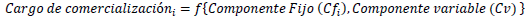 y será aprobado por la CREG mediante resolución particular. Una vez aprobado el cargo fijo de comercialización, el comercializador calculará y aplicará el cargo variable de comercialización imputable a cada mercado relevante por él atendido. Como se describe en la siguiente ecuación, la remuneración por concepto de comercialización incorporará un componente fijo