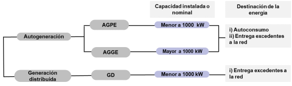 A continuación, se presentan los agentes que participan en las actividades de autogeneración y generación distribuida, en función de la capacidad instalada requerida: