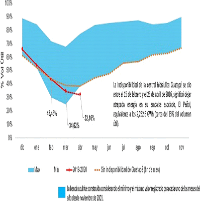 Como se puede observar, desde finales del año pasado el nivel de embalsamiento ha estado por debajo, incluso, de la media del año 1991 en el cual se presentó una situación de desabastecimiento energético, y que disparó las alarmas igualmente en el año 2016. Así las cosas, comparte esta Superintendencia la preocupación de la CREG bajo el entendido de que se hace necesario contar con mecanismos que generen los incentivos en el corto plazo y solamente por la coyuntura actual, para que los embalses efectivamente almacenen el recurso, en aras de permitir una adecuada generación hídrica para el periodo de mayo a julio de 2020 junto con la generación de respaldo necesaria, pero sin que el SIN genere una dependencia de esta última dado el mayor riesgo de que la energía se encarezca aún más a si no se contara con el aporte hídrico.