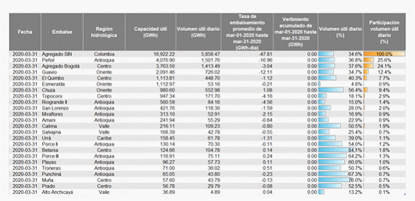 Fuente: Reporte a 31 de marzo de 2020 expedido por XM[37]