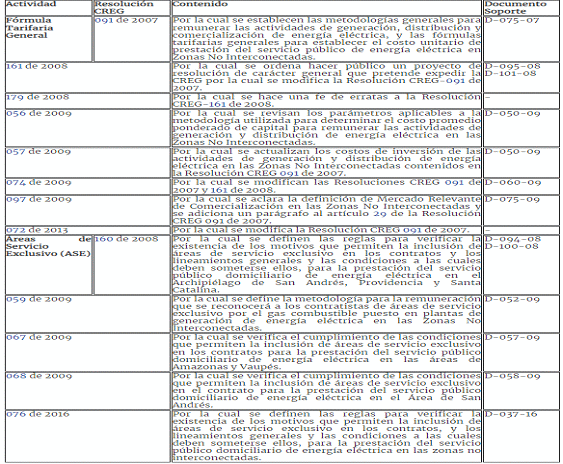 - Por otro lado, es importante mencionar que la ejecución de las actividades de generación y comercialización de energía eléctrica en las Zonas no Interconectadas se rigen por las Leyes 142 y 143 de 1994, el Decreto Único Reglamentario 1073 de 2015, las Resoluciones CREG 091 de 2007, 038 de 2018 y las demás mencionadas en la parte considerativa de este documento.