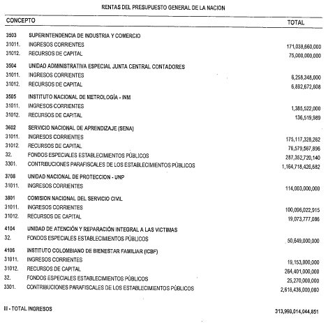ARTÍCULO 1. PRESUPUESTO DE RENTAS Y RECURSOS DE CAPITAL. Fíjense los cómputos del presupuesto de rentas y recursos de capital del Tesoro de la Nación para la vigencia fiscal del 1. de enero al 31 de diciembre de 2021, en la suma de TRESCIENTOS TRECE BILLONES NOVECIENTOS NOVENTA Y OCHO MIL CATORCE MILLONES CUARENTA Y CUATRO MIL OCHOCIENTOS CINCUENTA Y UN PESOS MONEDA LEGAL ($313.998.014.044.851), según el detalle del Presupuesto de Rentas y Recursos de Capital para el 2021, así:
