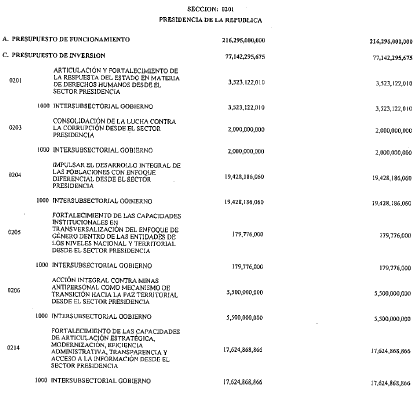 ARTÍCULO 103. ANEXO DEL TRAZADOR PRESUPUESTAL PARA LA EQUIDAD DE LA MUJER. Para la siguiente vigencia fiscal, las entidades estatales del orden nacional conforme a sus competencias identificarán las partidas presupuestales tanto de funcionamiento como de inversión, de acuerdo con lo establecido en el artículo 221 de la Ley 1955 del 2019, donde se pormenoricen los programas y proyectos de cada sector y el comparativo con la ejecución presupuestal de la vigencia anterior. Esta información debe formar parte del proyecto de Ley del Presupuesto General de la Nación que se presente al Congreso en la siguiente vigencia, como un anexo denominado: Anexo Gasto Presupuestal para la Equidad de la Mujer.