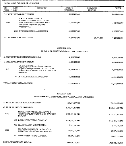 ARTÍCULO 119. Con el fin de concurrir a la financiación de la construcción del Hospital Regional de Alta Complejidad del Eje Cafetero "Carolina Larrarte Nuestra Señora de los Remedios", en Pereira - Risaralda, en el presupuesto del Departamento Nacional de Planeación, se encuentran incorporados doscientos mil millones de pesos m/cte ($200.000.000.000), con el fin de ser distribuidos a otros órganos del presupuesto.