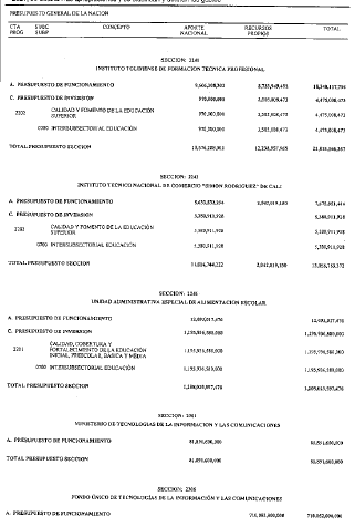 La Dirección General del Presupuesto Público Nacional del Ministerio de Hacienda y Crédito Público hará mediante resolución, las operaciones que en igual sentido se requieran durante el transcurso de la vigencia.