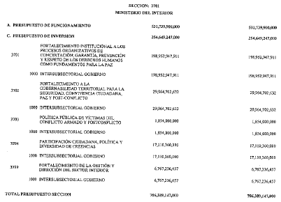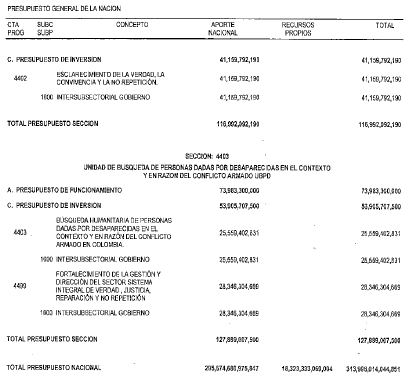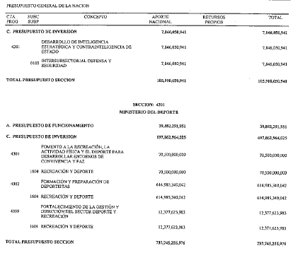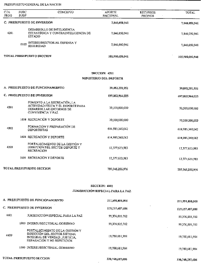 ARTÍCULO 2. PRESUPUESTO DE GASTOS O LEY DE APROPIACIONES. Aprópiese para atender los gastos de funcionamiento, inversión y servicio de la deuda pública del Presupuesto General de la Nación durante la vigencia fiscal del 10. de enero al 31 de diciembre de 2021 una suma por valor de: TRESCIENTOS TRECE BILLONES NOVECIENTOS NOVENTA Y OCHO MIL CATORCE MILLONES CUARENTA Y CUATRO MIL OCHOCIENTOS CINCUENTA Y UN PESOS MONEDA LEGAL ($313.998.014.044.851), según el detalle que se encuentra a continuación:
