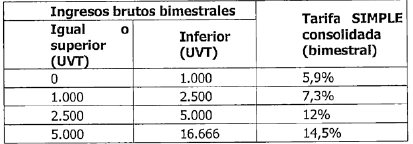 | Ingresos brutos bimestrales | Tarifa SIMPLE consolidada (bimestral) | |