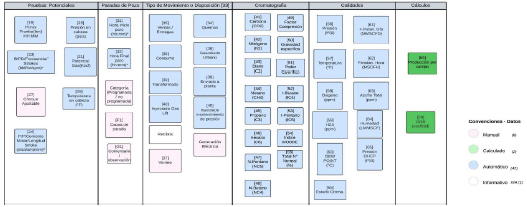 - Dos segmentos mayores, el primero agrupa los datos de alta frecuencia o automatizados electrónicamente; el segundo agrupa los datos de baja frecuencia que corresponde con datos manuales, datos obtenidos en laboratorio o de eventos de la operación.