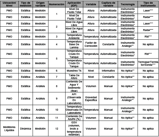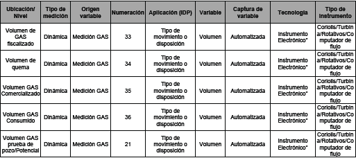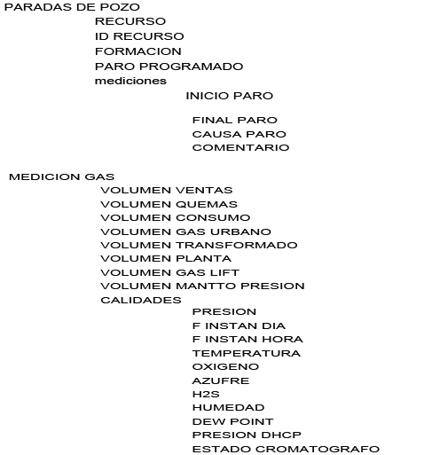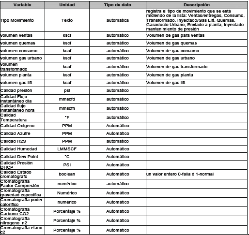 - El primer segmento contiene una agrupación, o arreglo de datos, para el registro de los movimientos de crudo en PMO y medición de gas durante el día de operación.