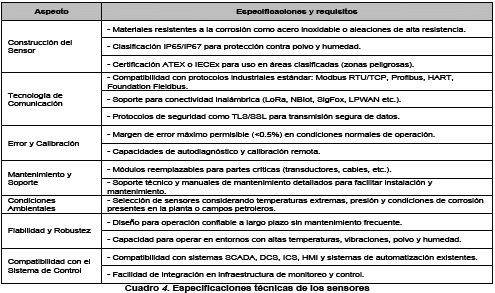 En el Cuadro 4 se presentan las especificaciones técnicas mínimas para los sensores e instrumentos para la medición electrónica.