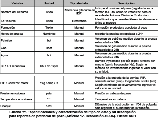 IDP en línea: Informe Diario de Producción en el que se reportan los resultados de las operaciones del día anterior de manera automatizada, este informe se requiere para los operadores que se establecen en el artículo 3o de esta resolución.