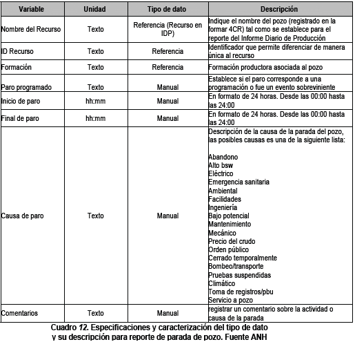PARÁGRAFO 4o. La ANH podrá solicitar la modificación del proceso de entrega y/o de la estructura de la plantilla del archivo JSON para la generación del Informe Diario de Producción (IDP) en línea en cualquier momento, para ello, se informará mediante circular emitida por la ANH a todos los operadores del tiempo que dispondrán para dicha entrega, el cual no podrá ser mayor a un plazo de diez (10) días calendario.