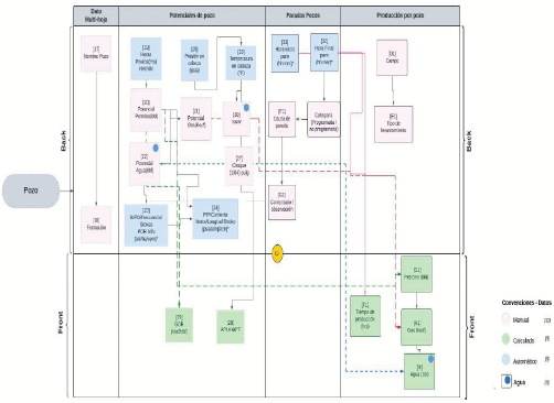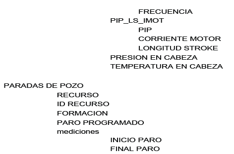 Datos en baja frecuencia: Información recopilada de forma manual con periodicidad variable, generalmente asociada a reportes específicos, incluyendo información de manera manual producto de los recorridos del operador en campo, resultados de laboratorio, paradas de pozo, registrados en plataformas de gestión operativa o en plantillas de operación.