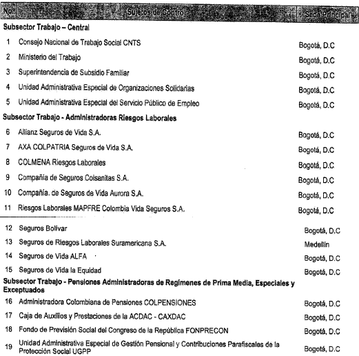 ARTÍCULO 14. CONTRALORÍA DELEGADA PARA EL SECTOR TRABAJO. La Contraloría Delegada para el Sector Trabajo será competente para ejercer la vigilancia y el control fiscal a las siguientes entidades: