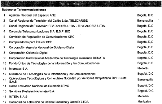 ARTÍCULO 4o. CONTRALORÍA DELEGADA PARA EL SECTOR DE TECNOLOGÍAS DE LA INFORMACIÓN Y LAS COMUNICACIONES. La Contrataría Delegada para el Sector de Tecnologías de la Información y tas Comunicaciones será competente para ejercer la vigilancia y el control fiscal a las siguientes entidades:
