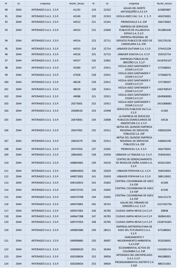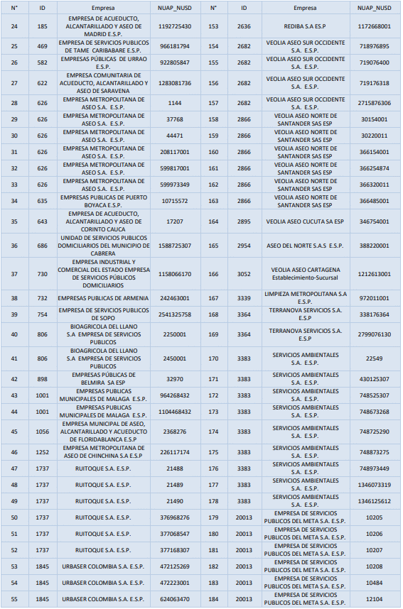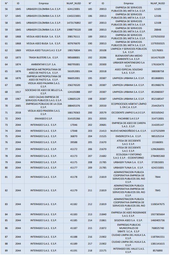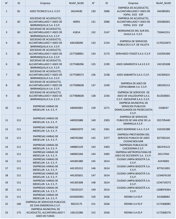 Catastro de usuarios. Es el listado de la respectiva persona prestadora, que contiene los usuarios del servicio con sus datos identificadores.